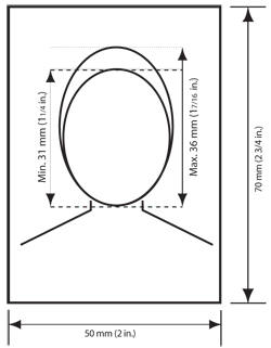 - The frame size must be 50 mm x 70 mm (2" x 2.75").